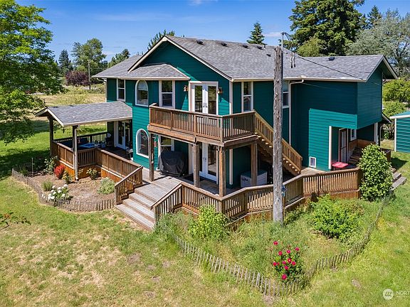 2 homes, 1 parcel, fully fenced-cross fenced, 4.6 acres, main home 2,972 sqft 3bd, den, office, & 3bth. Newer carport, roof, cement plank siding, furnace, heat pump, LVP flooring, leaf filter gutter system, Trimlight permanent holiday lighting, OmniShield safe home system. Main level offers, WB fplc, bth w/walk-in shower & stand alone tub, den, mudroom w/plumbing for half bth, entertainers kitchen, dining area, & bar with propane fplc. Upstairs 3bd, office, 2bth, primary en suite w/balcony & stairs to bottom deck, furnace & WH in 805 sqft basement w/storage. Backyard w/fruit trees, garden area, carport & outbuildings. Second home 2018 1,188 sqft manufactured 2bd/2bth, private driveway, septic, power meter, water connection, A/C, WB fplc.