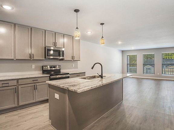The home's 3 baths include beautiful gray cabinets with granite countertops. From the crisp fixtures to the pristine finishes, every detail is brand new.