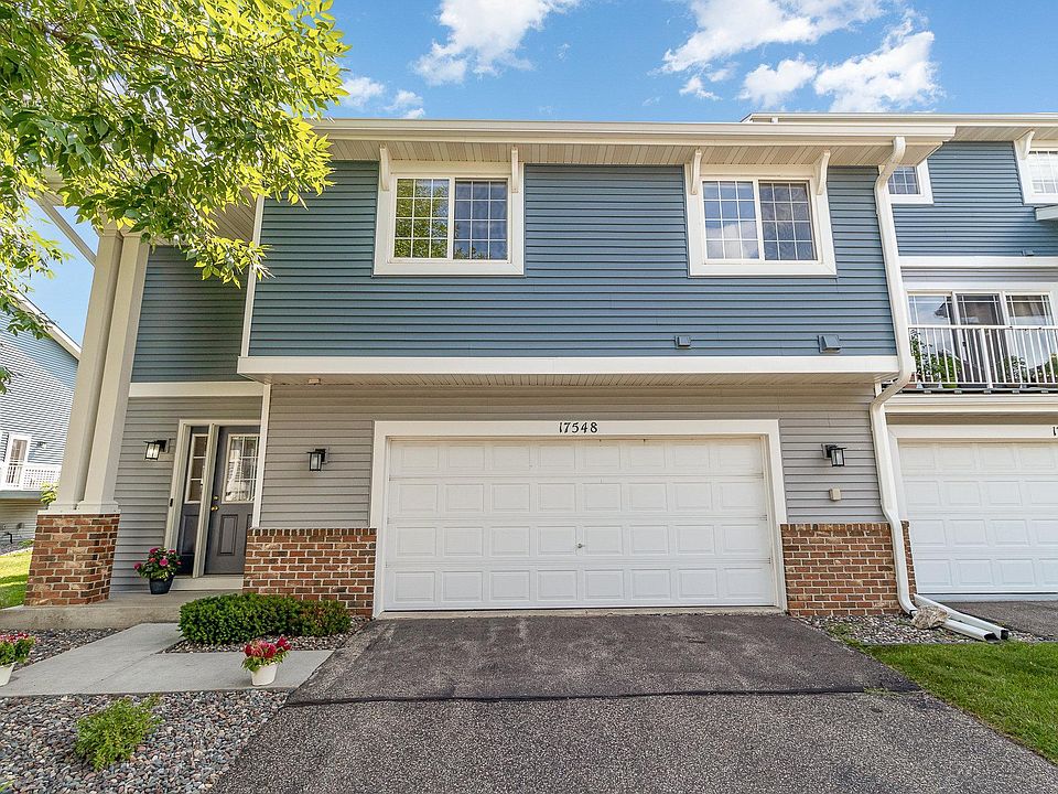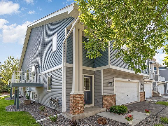 Beautifully refreshed 2 bedroom, 3 bath end-unit townhome with new paint & flooring throughout. Bright, high ceiling main level has a welcoming open floorplan. Sunny living room with a cozy gas fireplace, built-ins & a walk-out to the great deck, for extra relaxing & entertaining space. Inviting kitchen features pretty granite countertops, large center island, stainless appliances, & lots of cabinets, plus a big walk-in pantry. Convenient main-level 1/2 bath. End-unit windows light the luxurious upper level primary bedroom, which offers a spacious flex area & big walk-in closet. Full upper walk-through bath has calming, attractive finishes & dual sinks. Good sized 2nd upper bedroom. Well-appointed upper level laundry room with newer washer & dryer. Huge lower-level family room has lots of windows, 1/2 bath, and under-stairs storage. New roof & siding. Close to parks & amenities. Basswood Elementary, Maple Grove middle & high schools. Buyers and agents to verify all measurement/data.