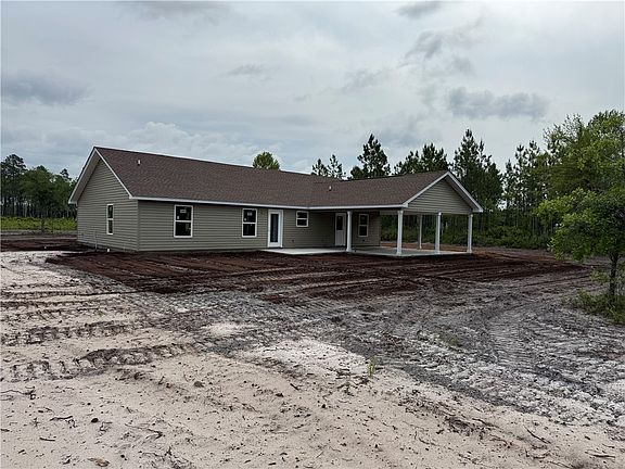 New Construction on 10.65 acres on Brantley/Glynn County line, expected to be completed by end of June 2025. This home has a large great room with vaulted ceiling, dining area and island with breakfast bar. There are 3 spacious bedrooms with a split floor plan. The master suite features a walk in closet, double vanity, and large shower. There is an attached double carport, 22' X 22', an open patio and a covered front porch. This property has over 10 acres of land, no homeowners association and only about 20 minutes to Exit 29 @ I95 in Brunswick!!