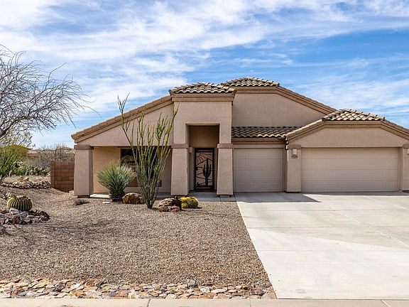 * VIEW VIDEO: https://az.movinghometour.com/22008323_Tucson%20MLS * Gorgeous, Immaculate 4 bedroom 2 bath home on .62 acre of lush natural desert in the sought after Vail School District. This absolutely stunning home features a gorgeous kitchen with granite counters, huge center island, stainless steel appliances, vaulted ceilings, maple cabinets, built-in desk, huge walk-in pantry, 18x18'' tiles, plantation shutters. Huge master bedroom with a walk-in closet with built-ins, dual sinks in both bathrooms, oil rubbed bronze bath faucets. 3 car garage with service door. Laundry room with SS sink and cabinets. The extended backyard is an entertainers delight featuring a gorgeous 13,000 gallon pebble tech pool with spa and waterfall. It has an easy touch pool and spa remote, gas heater and turbo cleaning system.