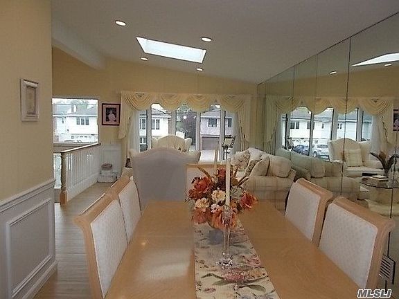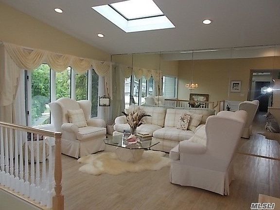 Significantly expanded home on quiet South Merrick block, near playground and park. Property includes expansions on both floors including an expanded kitchen, Florida room, expanded Master BR, bathroom, WIC, home office w/built in furniture, 3 full bathrooms, designer backyard w/putting green, two zone air & heat, numerous skylights, expanded den, and top-notch treatments throughout property. This 3074 sq ft expanded one of a kind high ranch...Can be mother daughter w/proper permits...great oversize one of akind high ranch