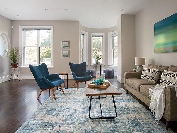 This gorgeous, 2017 comprehensively renovated condominium is in a top North Brookline location between Washington Sq. and Cleveland Circle. It is under 1/3 of a mile to the B, C & D lines and Runkle School. The main floor has a huge open living/dining room with a bay of windows, fireplace and a door to a private deck. Living area is open to a chef's kitchen with high-end stainless appliances & quartz counters. Off the living room is a sunny bedroom and a full bathroom. At the front of the first floor is an oversized suite with a powder room and separate HVAC system. This room is currently assessed as office space and has a legal private entrance, making it ideal as an office or family room but easily converted into a large bedroom. Finished with the same care as the top floor, the garden level has the current master bedroom suite with a walk-in closet and en suite bathroom with radiant heat, plus 2 more bedrooms one with en suite full bathroom, laundry room. 1 garage space. Central AC