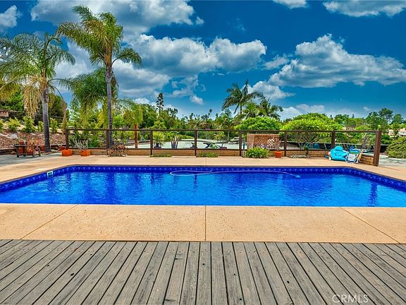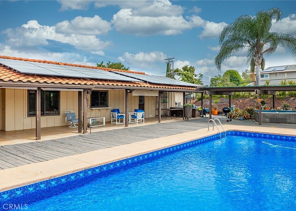 Welcome to 1755 Calmin Drive, a serene haven nestled on a country road in Fallbrook, CA. This meticulously maintained 4-bedroom, 4-bathroom residence exudes pride of ownership and sits on a sprawling 1-acre lot, offering picturesque views of South West Fallbrook and the surrounding landscape. The home features vaulted ceilings that lend an airy feel, complemented by a large brick fireplace in the living room for cozy gatherings. Step outside to a large covered patio, perfect for entertaining, and a beautifully updated pool that gleams under the California sun. Inside, you'll find a spacious and well-appointed kitchen with stainless steel appliances, perfect for preparing family meals and hosting friends. A large walk-in pantry provides ample storage space for your culinary essentials. The generously sized bedrooms offer plenty of room for comfort, with one of them being a lavish master bedroom. Additionally, there's a junior suite with its own bathroom and private entry, adding flexibility and convenience. Additional amenities include a detached 2-car garage, and a concrete driveway. Experience modern convenience with the inclusion of a whole house water filtration system, a central vacuum system, and an Energy Star rated high-efficiency heat pump/AC/Furnace system. A unique advantage is its idyllic location near a charming neighborhood vineyard, adding a touch of beauty and community. With a fully paid-off solar system for both the home and pool, this property provides energy efficiency and modern comfort. Revel in the serene ambiance, the inviting pool, and the allure of living on a peaceful country road – a truly exceptional combination.