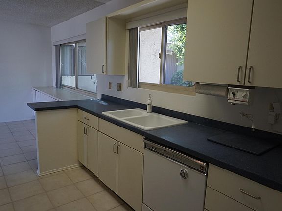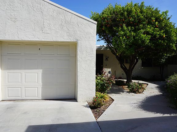 Great two bedroom, two bathroom home in Palm Springs' Casa Sonora neighborhood. This home features tile flooring, ceiling fans, dual pane windows, and tons of storage with built in cabinets. Galley kitchen with pull out shelves inside the cabinets, and all appliances are included. Master bedroom with linen closet, walk-in closet, and en-suite bathroom. Stacked washer and dryer located inside the home. Detached one car garage, and large North facing covered patio on the green belt in the back. Pets OK subject to owner's approval and additional rent/deposit. Cable TV is included. Please call the property manager at for more information or to schedule an appointment. Annual lease