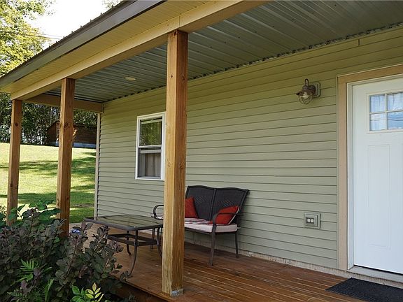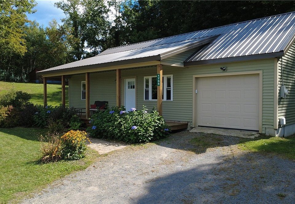 This 2 bedroom, 1 bath home is just perfect for someone who is just starting out or looking to downsize. Just 7 years young this ranch style home is in immaculate condition. Imagine sitting on your large covered porch enjoying your morning coffee with scenic views of the pond across the street. Inside you'll find many features including open concept kitchen w/peninsula, granite countertops, stainless steel appliances, laundry/pantry, tiled bathroom, high efficiency tankless water heater, radiant in-floor heat throughout, 8.5 ft ceiling heights, well insulated, metal roof plus fully finished heated garage for the winter months. Located on a large village lot with natural gas, public water plus a 10x16 shed for additional storage. Furnishings in home are included.
