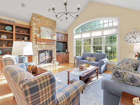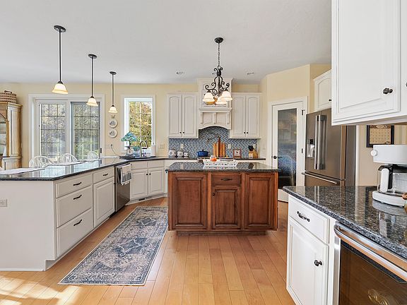Welcome home to this beautifully crafted 3 BR 2.5 BA ranch where no detail was spared. A bright open floor plan featuring custom cabinets and built-ins throughout. The kitchen boasts granite countertops, island with breakfast bar, tiled backsplash, walk in pantry, and generous dining area. A built-in desk adds function, while wet bars on both floors make entertaining a breeze. The spacious primary suite includes a tiled walk-in shower, dual sinks, and walk in closet. Enjoy evenings by the gas fireplace or relax on the patio overlooking the scenic 8 mile creek. A 3 car garage and first floor laundry for your convenience and a large inviting front porch with gorgeous landscaping completes this property.