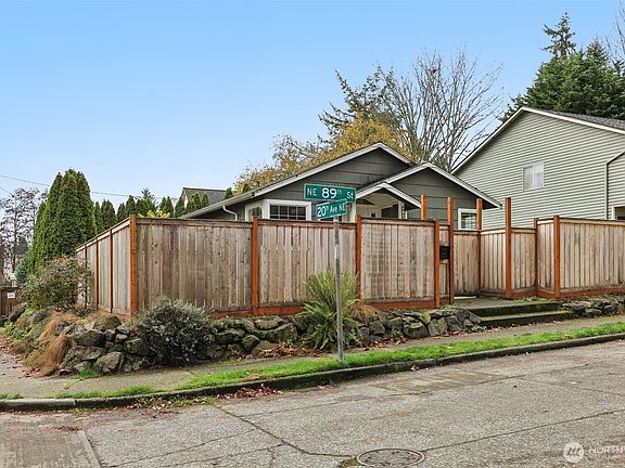 Charming cottage in the heart of Maple Leaf. Add your personal finishing touches to this bungalow or start fresh and build your dream home on this exceptional lot. Situated on an extra-large, fully fenced, flat corner lot, this property presents a prime development opportunity at the end of a quiet residential street. Close proximity to transit, Green Lake, and Maple Leaf Reservoir Park. The home has been refreshed with new paint, vinyl flooring, and carpet. Additional features include a spacious backyard deck, a standalone shed, and a generous driveway with ample off-street parking. The wrap-around fenced yard sits elevated above street level, providing excellent privacy. Buyer to verify all information to their satisfaction.