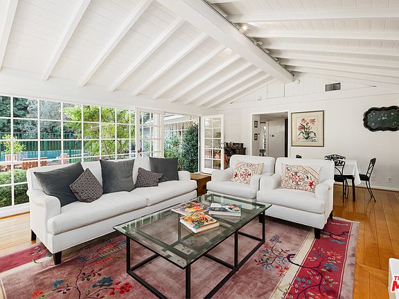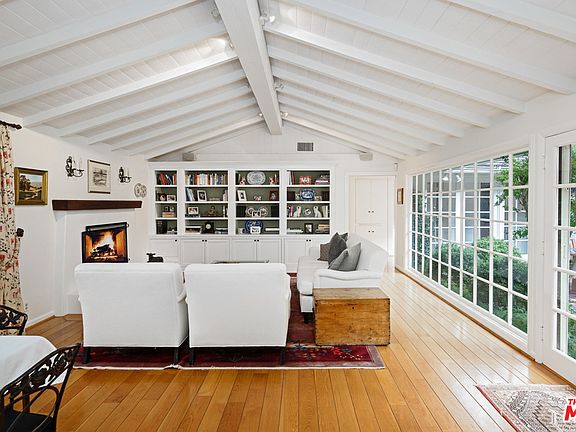 Gated, private, and loaded with traditional charm, bright, spacious single-level equestrianresidence built around backyard swimming pool. High, plank-and-beam ceilings, muntinwindows, wood floors, generous use of skylights, top-quality fixtures and appliances. Largeand lovely living/great room with fireplace, built-in shelves and cabinets, dining area,windows on two sides, one a full wall of glass opening onto verdant back yard, patio, pool.Family room has second dining area, also with windows on two sides. Chefs kitchen isgorgeous and bright, with abundant storage, large eat-in center island, multiple skylights,high-end appliances, built-in desk facing onto the garden. Four bedrooms include guestbedroom and lovely owners suite with private patio. Property is a serene sanctuary,complete with a stable yard, wraparound lawns, and a huge brick patio for al fresco diningand barbecues, entertaining, and relaxing poolside. A peaceful home in a Westside. Available starting September 1, 2020.