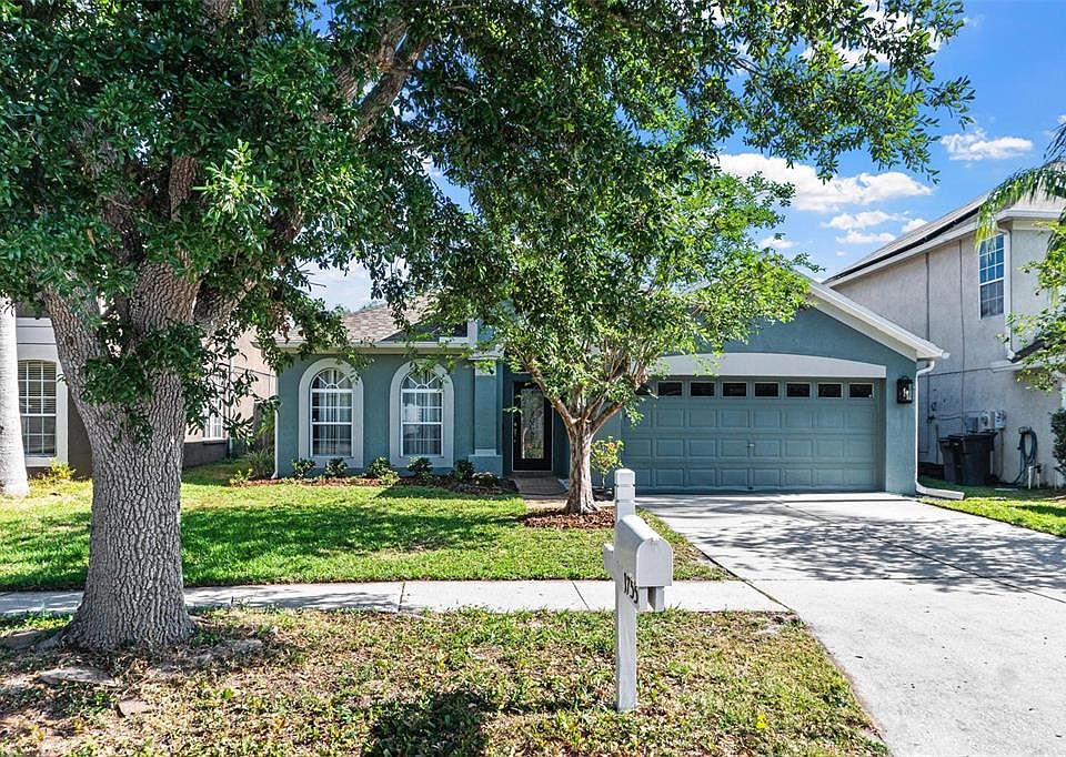 This Beautiful 3 bedroom, 2 full bath, 2 car garage home is located in the desirable Lakeview Village Community! The Community has No CDD, Low HOA, a Private Gated Access to Lake Mango boat ramp and dock. Bring your boats, Stand-Up Paddle Boards, Kayaks, fishing poles and more! Home is also Walking Distance to Lake Village Community Park with a playground, basketball court, a covered picnic pavilion, and walking paths. The home has a split floor plan, Gorgeous Hardwood Flooring and Ceramic Tile throughout. The Formal Dining Room leads to a sitting area for reading, working or additional entertainment space off the Kitchen. The kitchen has Quartz Counter-Tops with Waterfall Edge Bar Top, 42" Wood Cabinets w/Pull Out Drawers, Tile Backsplash, Gas Range, Built-in Microwave/Convection Oven, Bosch Dishwasher. Living Room is Equipped with Integrated Home Theater with 6 Speakers for Movie Night and Ceramic Tile Floors. The Primary bath has Double Sink Vanity with Granite Counter-Top, Garden Tub, Stand Alone Shower and Walk-In Closet. Guest Bathroom has Granite Counter-Top, Tub and Shower Combination. Inside Laundry Room next to Garage. Roof replaced in 2020, AC 2022. Home also has a French Doors that lead to Backyard, a Gas Water Heater and a Sprinkler System. Close to Shopping, Entertainment, Restaurants. Minutes from I-4 and I-75, Top Golf, Bass Pro Shop, Westfield Mall, Beaches, Golf, and Much More!. Don't miss this opportunity to own an amazing home in a great neighborhood! NO CDD, LOW HOA