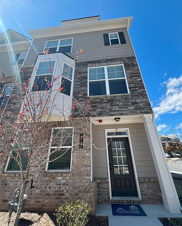 This elegant end-unit townhome in Marietta could be your perfect dream home. Conveniently located less than five minutes from I-75, it offers effortless commuting and easy access to everything you need. The main level boasts an open-concept design, featuring a spacious gathering room that flows seamlessly into the kitchen. The kitchen is beautifully appointed with modern white cabinetry, expansive quartz countertops, and stainless steel appliances. A large island overlooks the dining area, living space, and a striking electric fireplace, while a generous balcony extends your entertaining options outdoors. Upstairs, the owner's suite with a tray ceiling opens to a luxurious spa-like bathroom with dual vanities, a large tiled shower, and a walk-in closet. The first and third levels each include a full bathroom, providing flexible space for guest suites or home offices. Additional highlights include a two-car rear-entry garage on the first level and community amenities such as a swimming pool, dog park, playground, and more.