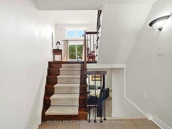 Welcome to Your Dream Townhome in Rockwood Village! Discover this renovated gem offering over 1,865 sq ft of modern living, situated in a well-managed complex on the Toronto-Mississauga border. Every inch of this home shines with hardwood flooring, soaring vaulted ceilings, and an open-concept living area designed to impress. Cozy up by the wood-burning fireplace, or soak in the abundant natural light streaming through large windows. Step outside to your private deck & patio, perfect for morning coffee or evening relaxation. Entertain effortlessly in the spacious family-sized dining area, overlooking the living space and adjacent to a gourmet kitchen complete with new quartz countertops, tiled backsplash, refreshed cabinetry, and stainless steel appliances. Upstairs, retreat to the expansive primary suite featuring a large closet and private 3 pc ensuite, while two additional generous bedrooms offer comfort for family, guests, or home office use. The versatile lower level includes a bright family/recreation room with an above-grade window - the perfect spot for a media room, home gym, or guest suite. Enjoy the unbeatable location - walking distance to shopping, transit, parks, trails, and top-rated schools. Move in and start living your best life in one of the most sought-after communities in Rockwood Village !