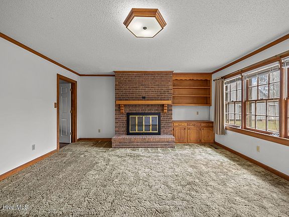 Brick ranch in a serene setting with spacious bedrooms and lots of closet space, covered front porch, patio and carport for two. Formal dining room, laundry room and family room with fireplace and built-ins. Freshly painted and carpets cleaned! Peaceful lot outside of city limits with mature trees and only a 15 minute drive to the convenience of Winterville shopping. Ask buyer's agent for agent remarks.