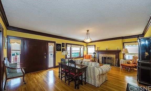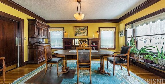 Sequestered behind gates framed in manicured lawns rests a lovingly cared for Classic Hollywood Craftsman home. Step up to the palatial porch and enter through regal door to enjoy gracious living from a bygone era. Rich dark wood crown moldings, burnished wood floors and handsome wood mantel surrounding a distinctive fireplace grace the spacious living room. Oversized formal dining room for gracious entertaining complete with wonderful mirrored dark wood buffet and custom window treatments. Cheery, light and bright kitchen with ample cabinets boasts a cozy breakfast nook. Elegant hall leads to lovely master suite with soaking tub and stall shower in the master bath with charming cabinets framing sink. Guests will be happy in lovely bedroom with private ~ bath on the main floor. Third downstairs bedroom with half bath makes a terrific office, or den.The upstairs floor features a private entrance and spacious bedrooms, one with private bath. Another room boasting a kitchenette with breakfast bar can be used as a studio, or gym. This extremely versatile floor plan is ideal for extended family living, roommates, or a perfect work space at home.Ample parking with three car garage, plus a separate, incredible workshop for hobbies, or more serious work. S