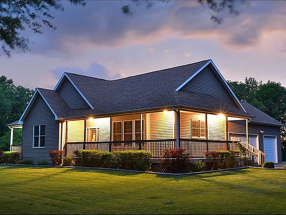 Surround yourself on nearly 4 acres by nature and mature trees just south of Franklin Creek State park with horse riding and walking trails, fishing and more!! This 4 bedroom, 2.5 bath home boasts a 3 car garage and features lofty 9'ceilings throughout & 16.5' vaulted ceilings in the Living room and Master bedroom. Custom, 42" maple cabinets w/crown molding, an island, pantry & plenty of space for a large dining table create this wonderful Kitchen. Plus 1st floor laundry & half bath are located just off of the kitchen. There is a corner wood/gas Fireplace located in the spacious Living room as well as triple doors leading out to the deck and pool area. The Master Suite provides a cozy retreat in this home. Complete with corner whirlpool tub, double vanity, and walk in shower. Plus access to a private deck for that morning cup of coffee or evening wine! There are also two walk in closets, each one 6' x 4'. The outside is easily enjoyed by a wrap around front porch and two back decks measuring 14' x 10' & 15' x 15' that lead from the Living room to the 18' above ground pool w/solar heater. In 2016, new roof & siding were completed & in 2022 a new water softener was installed. A wood burning stove in the basement is piped into the whole house HVAC duct system for extra heat when you want to save money. The full basement also features two escape windows and plenty of extra space for projects! Additional features include a sump pump w/battery back up, radon mitigation system & a reverse osmosis system @ the kitchen sink. Zoned A-1 with its own .2 mile walking path through the trees and natural areas for wildlife viewing. Located just 1.6 miles down the road from Franklin Creek State Natural Area, where one can hike, camp & ride the equestrian trails! Located 10 minutes from Dixon, IL!