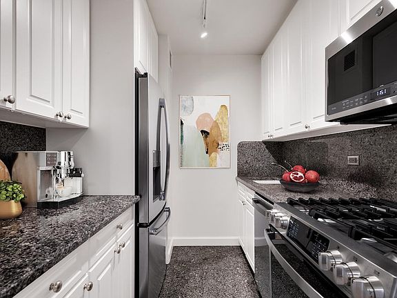 High floor apartment with expansive views. Large bay window overlooks bridges and Key Island. Contemporary kitchen offers pass-thru window, Impala granite, and stainless appliances. King-sized bedroom, plenty of closets, and marble bathroom.