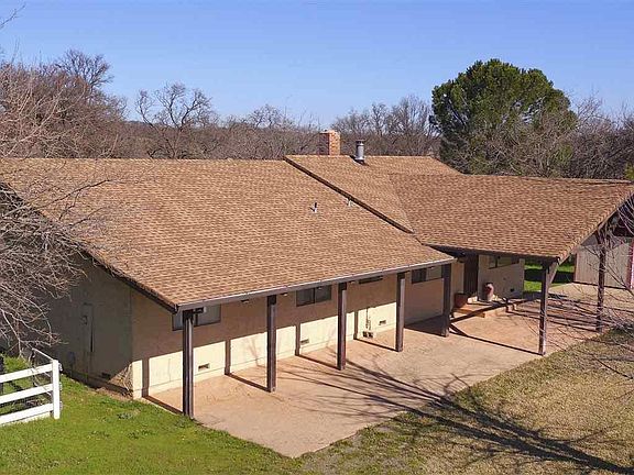 Lots of potential here! Ranch property. Great property for horses or cows, with access to seasonal creek for riding. Level area offers plenty of room for your horse setup. Almost completely fenced and x-fenced. Home sits back off the road behind front pasture. HOme is unique with lots of wood and stone, 2228 s.f. with 4 bedroom/2 baths. There is a gunite pool that is surrounded with wrought iron fencing. Seasonal creek separates front of the parcel from the back. Back portion is also fenced.