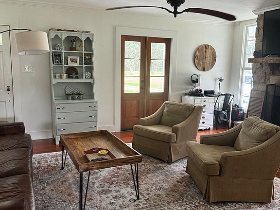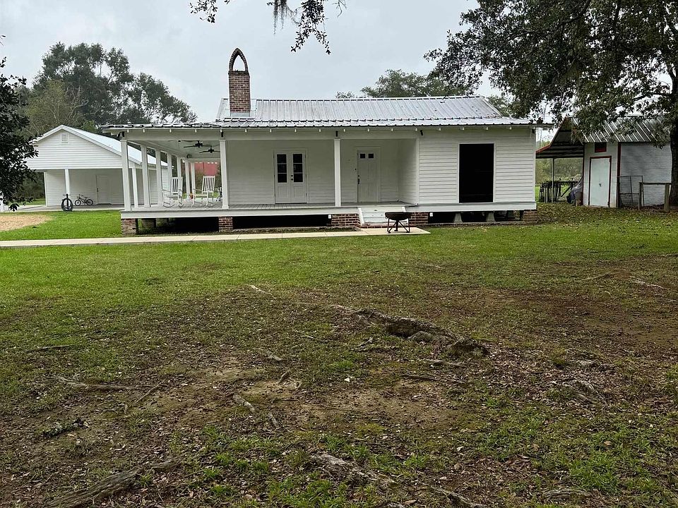 Discover the perfect blend of charm and modern luxury in this picturesque 2-bedroom, 2-bathroom home, set on 10 tranquil acres under the canopy of mature oaks. This timeless retreat features a wrap-around porch, ideal for savoring peaceful mornings or scenic sunsets. The dream kitchen is a chef’s delight with stainless steel appliances, an oversized island crowned with a butcher block countertop, and plenty of space for gatherings. The luxurious master bath is a true oasis, offering split vanities, stunning brick floors, a large custom shower, and a freestanding tub for ultimate relaxation. Every detail of this home exudes character and elegance. Whether you’re enjoying the quiet serenity of the property or hosting friends and family, this home is a rare find. Don't miss your chance to own this idyllic slice of country living!