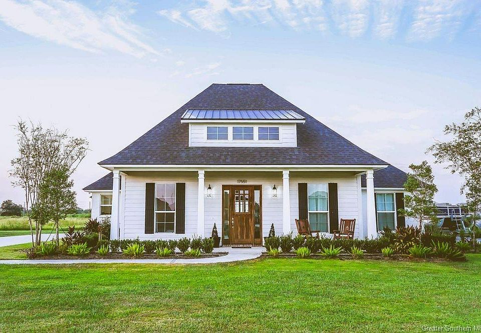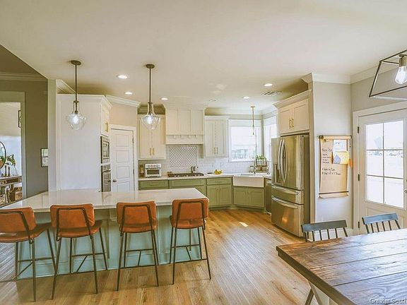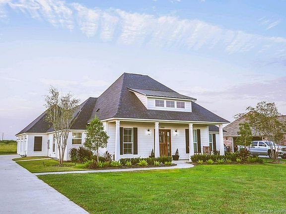 A special find in the Harper Ranch Subdivision development, within the Iowa community, this 4-bedroom 2.5-bath Acadian-style home is unlike any others in the area. It stands out with unique exterior features such as painted brick and hardy board, tapered poles on the front porch, a large shed-style dormer and beautiful, well-established landscaping. There are many special upgrades to this home including a buried 250-gallon propane tank which fuels the tankless on-demand water heater, a custom gas fire pit, the gas fireplace (including a beautiful marble tile surround), the gas stove top and an extra gas access point on the back porch for grilling. More upgrades include quartz counter tops throughout the home, mud room, luxury vinyl flooring and upgraded craftsman-style finishes such as large flat moldings, custom mantle and vent hood, shaker cabinets and flat ceilings (no stomp-and-drag). The home has a large front and back yard, and the large open field behind the home allows for stunning views from the master bedroom and living room. The attached 2-car garage includes plenty of extra space for storage and an additional attached workshop garage.