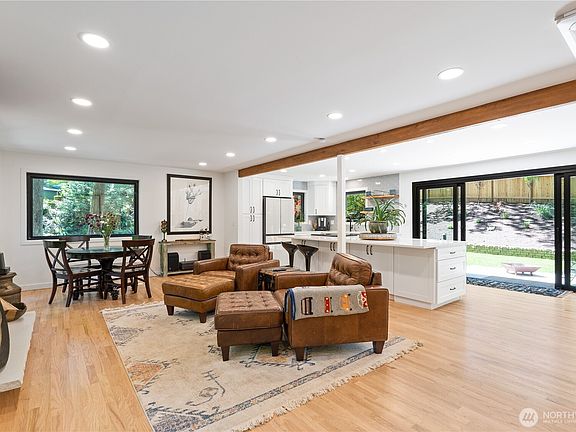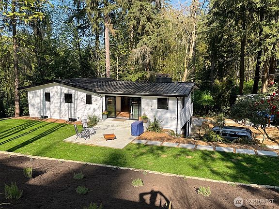 Top to bottom remodel just completed of this Mid Century Modern entertainers dream. Truly a Rare find w/ close in location to everything Woodinville & exceptional quality of finishes & modern updating with no expense spared. NEW NEW NEW: hardwood flooring, Black Viny Windows, 12’ Pella Clad OXXO Sliding patio doors, 5 panel Black int doors, Metal Roof, Mini Split heating and cooling HVAC, 3 new bathrooms, heated tile flooring, smart toilets w/ bidet, new Patio & Deck, New landscaping & fencing, industrial basement w/ polished concrete flooring, open beam ceilings ++. Exceptional Open Concept Kitchen w/ white shaker cabinets, quartz & modern appliances made for entertaining. If your looking for “The One” and want to stand out - This is IT
