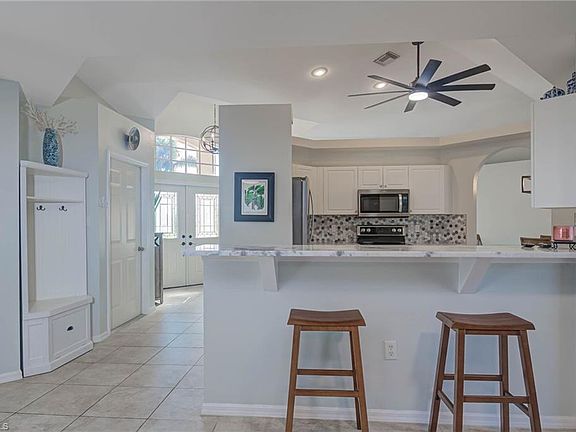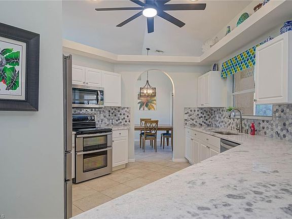 Welcome to your SALTWATER POOL home in beautiful South Fort Myers! This exquisite 3-bedroom, 2-bath retreat is a true gem, offering modern elegance, luxurious upgrades, and an outdoor paradise designed for the ultimate Florida lifestyle. From the moment you enter, you’ll be captivated by the spacious split-floor plan, soaring ceilings, and abundant natural light. The luxury vinyl flooring in all bedrooms adds warmth and durability, creating a perfect blend of style and comfort. The heart of this home is the stunning kitchen, featuring sleek granite countertops, crisp white raised cabinetry, stainless steel appliances, and a decorative tile backsplash. Whether you’re hosting a dinner party or enjoying a quiet meal, this space is both functional and breathtaking. Each of the three bedrooms boasts its own walk-in closet, providing ample storage and organization. The master suite is a true retreat, complete with custom organizer shelving in the closet and a spa-like master bath featuring a garden tub, dual vanities, and a separate walk-in shower. Step outside to your tropical backyard paradise, where a gorgeous below-ground pool (2019) awaits. The screened-in lanai offers a peaceful, bug-free setting, perfect for enjoying the Florida sunshine year-round. Plus, the convenient pool bath ensures easy access for guests and kids. Located in the heart of South Fort Myers, this home offers easy access to pristine beaches, world-class golf courses, fine dining, and premier shopping. With top-rated schools and a vibrant community, this home is ideal for families, retirees, and everyone in between.