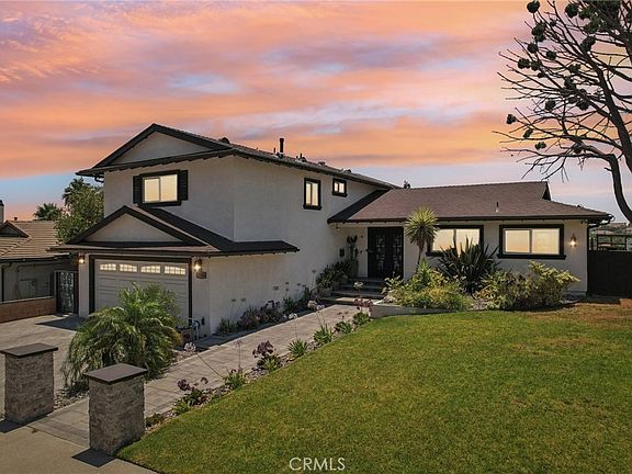 Step into this stunning view home located in one of Granada Hills' most desirable neighborhoods. The property boasts exceptional curb appeal with newly installed pavers, landscaping, and vibrant plants and flowers along the walkway. As you enter, you’re greeted by an inviting, bright, and open floor plan that offers breathtaking views from every angle. The chef’s kitchen is equipped with stainless steel appliances, stone countertops, and a Carrera marble center island that opens to the large living and dining room. This open living and dining area provides plenty of space for gatherings and entertainment. Step down to the family room/den, which features a fireplace and wet bar. Upstairs, the oversized master suite includes a large walk-in closet, walk-in shower, dual vanity, and a modern tub. Two additional bedrooms and another bathroom are also located upstairs. Additionally, there is a bedroom and bathroom off the garage, ideal for in-law quarters or a private home office. Additional features include an iron gate door, wood floors, recessed lighting, two AC systems for maximum comfort and efficiency, an APEC reverse osmosis water filter, an ADT alarm system, hardwired cameras, a Samsung washer and dryer set, and blinds on all windows for privacy. The home is also equipped with an EV car charger. The outdoor space includes concrete and grass pavers, a built-in DCS propane BBQ, a patio, and a kids’ swing set and slide on turf. It also provides breathtaking views of the beautiful canyon and city lights. Conveniently located near the highly sought-after Robert Frost Middle and Bee Canyon and O'Melveny Parks.