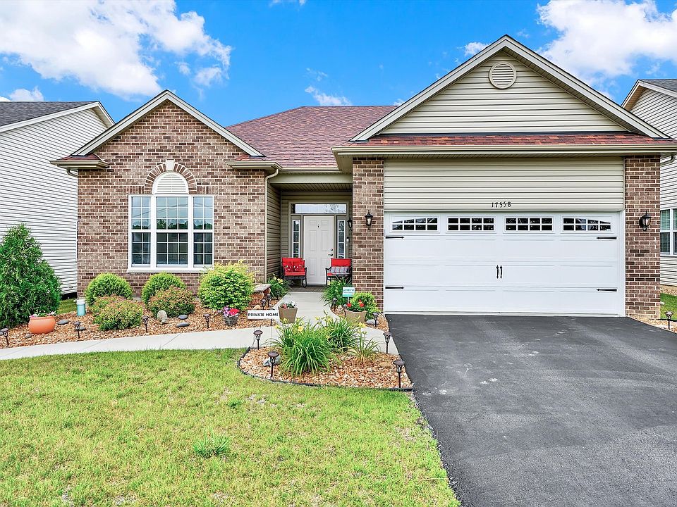 Gorgeous 2 year old Coral Springs builders model available in the desirable 55 and over community of Lago Vista! Seller has done so many upgrades since purchasing in 2021. All new light fixtures and fans throughout. The heart of this home is the kitchen featuring a breakfast bar area, custom cabinetry, wine rack, pantry, upgraded stainless steel appliances, custom backsplash and reverse osmosis system to provide pristine drinking water. Designer blinds and drapes will stay with this property. Alexa switches in some rooms, insulated garage, and sprinkler system. 10 foot ceilings bring in tons of natural light from all the windows. Open floor plan is perfect for entertaining and togetherness. The master bedroom offers a huge bathroom with a walk-in shower, double vanity, big walk-in closet, an extra closet and amazing views to the back yard. Enjoy your summer evenings on the beautiful patio with added outdoor coach light. MAINTENANCE FREE LIVING WITH LOW HOA'S that include common insurance, Clubhouse, exercise facilities, pool, lawn care and snow removal. This active community offers a 21,000 SQF clubhouse with indoor and outdoor pools, sports lounge, fitness room, banquet room, ping pong room, library, spa, beauty salon, arts and crafts, and 22 lakes and ponds great for fishing. There are always fun activities and social events going on creating the perfect resort style living. Building new with all of the upgrades of this home would cost much more. No sign on the property.
