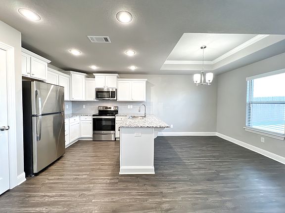 Great location in Prairie Grove Belle Meade Subdivision close to schools & Prairie Grove Battlefield State Park. Short commute to 1-49 & 11 miles to U of A campus. Newer 3 bedroom, 2 bath, 2 car garage home split floor plan w/privacy fenced back yard & covered back patio. Open concept living/dining/kitchen with separate pantry. Vinyl plank floors throughout. Cathedral ceiling in living room. Master suite w/dual vanities, separate shower, linen closet, and access to laundry room through master closet. No smoking allowed anywhere on property & No parking in the street after 8pm. No basketball goals allowed in front of home. No trailers, boats, RV's or large work trucks weighing more than 3 tons may be parked anywhere on the property at anytime. Pets negotiable. Refrigerator included in rent amount. No above ground swimming pools. Tenant responsible for utilities, pest control, renter's insurance, & lawn maintenance. Non-refundable application fee of $48 per adult. All adults age 18+ who will be living in the home must be credit & background checked and on the lease. Apply at sandyloveless.