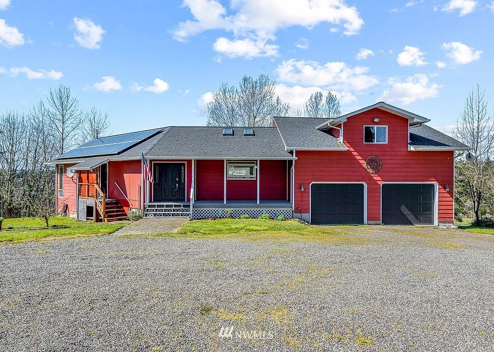 Beautiful 2,232 sq ft home overlooking 2.87 acres of what once was horse property. Nice open concept floor plan with large kitchen & dining room. Great for entertaining! Sunken living room with pellet stove & large windows capturing all the wonderful views! Loft style bedroom with attached bathroom & separate sitting area plus 3 closets. Hardiplank siding, oversized attached garage & a separate detached garage! This great home is designed for an addition & comes w/the blueprints. Well, septic & newer $45k 12KWH solar system installed on home make paying the bills super easy!