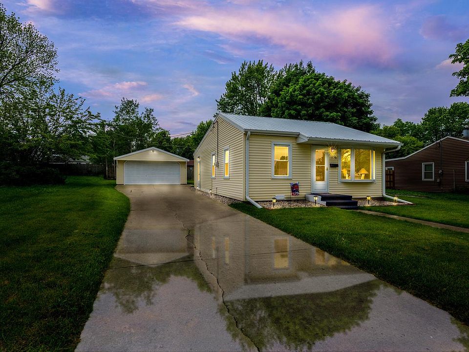 Welcome to your new retreat! This charming 2-bedroom home features a versatile flex room perfect for a bedroom, family room, or entertainment space--the possibilities are endless! Enjoy a cozy living room with hardwood floors and a large bay window. Both bedrooms boast HW floors, while the newly updated bathroom showcases beautiful tile, a new vanity, and LVP flooring. The galley kitchen offers new countertops, LVP flooring, and a delightful dining nook. A spacious 1st-floor laundry room provides ample storage and closet space. The partial basement includes a sump pump and extra storage. Updated insulation helps reduce heating and cooling bills. Don't miss this adorable home!