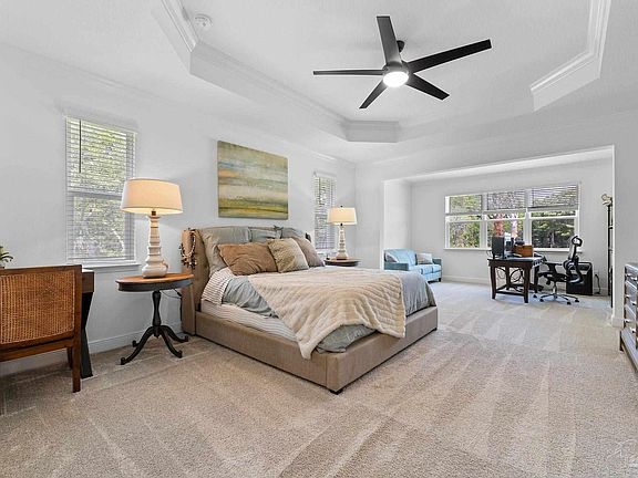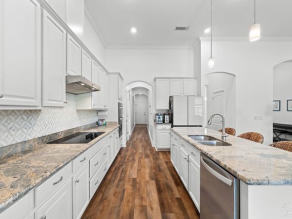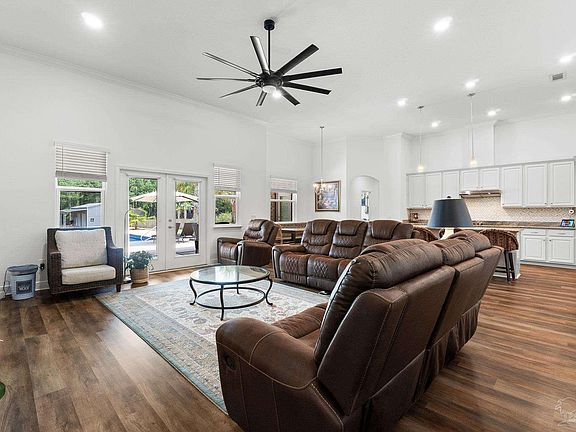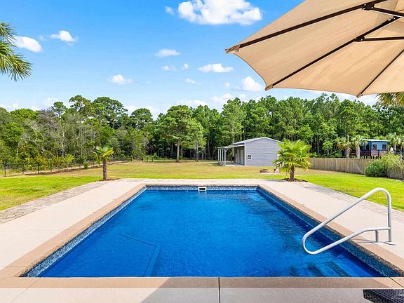 Welcome to this stunning executive home in Gulf Breeze, with all the amenities you could possibly want and more! This exquisite four bedroom, three bath home boasts solar panels with two Tesla power walls that power the whole home day and night (average power bill less than $30 per month). When you enter the home, you are greeted by soaring ceilings, with a formal dining room and formal living area on either side (which would also make a nice office). As you walk through the foyer, you come into an open living area. The kitchen is well equipped with a wall-oven with build in microwave, cook top with upgraded hood, island, granite counters, and two pantries (one with custom wood shelving). The primary bedroom is split from the other bedrooms and is very spacious with an additional sitting area and large en-suite bathroom. The en-suite bathroom offers separate his and her vanities, a soaking tub, shower, and large walk-in closet. At the other end of the house is a guest suite with it's own en-suite bathroom, along with two more bedrooms and one additional bathroom (which also leads to the pool area). Two attached garages ensure you have plenty of room to store your cars and toys (one garage is a two car, the other is a one car), both of which offer EV charging plugs and epoxy floors. The expansive two acre yard offers a sparkling salt water pool with heater (which is also run by solar power) and irrigation (which is fed via well). Near the back of the property is a 30 x 50 custom workshop with covered porch. The large workshop is a perfect work and hobby space, but also has the potential of being turned into another living area. This huge workshop has two ductless air conditioning units, closed foam insulation, and is totally run by it's own solar powered system. If you explore past the back fence, there is a serene spring-fed pond on the property. Don't miss your opportunity to own this luxurious home and incredible property!