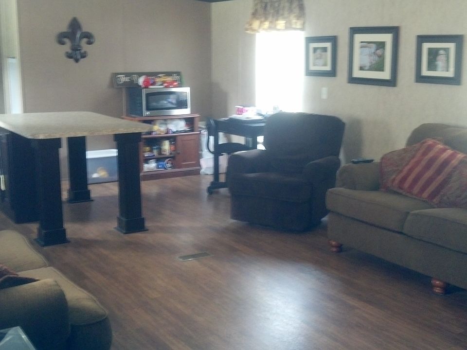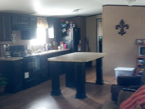 2013 16x80 Mobile home on 6.73 acres. 3Bed/2Bath. Large island in kitchen. Black appliances in kitchen. Front porch: wood. Dog pen. Gravel driveway.