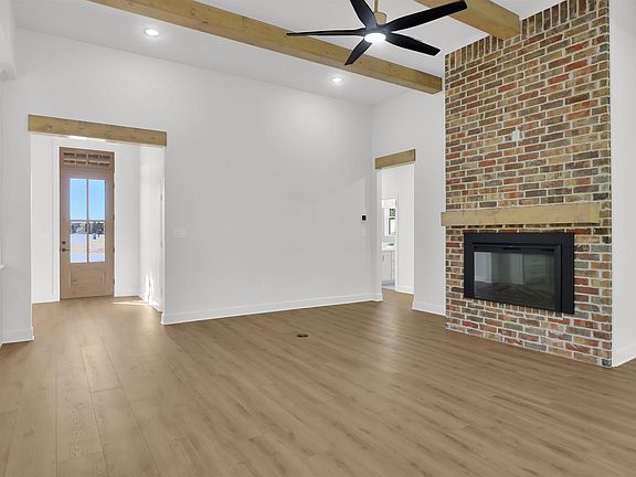 Stunning Transitional-style home nestled at the end of a cul-de-sac for the perfect Country Living feel. 17560 Sugar Bluff Ln, located in Sugar Ridge Estates! Just gorgeous! Custom features galore! Open floor plan, 4 bedrooms, 2.5 baths, and oversized 2 car garage with double garage doors. Split bedroom layout with natural light pouring in throughout the home. Kitchen has beautiful quartz, large island, 36” professional range, apron sink and custom cabinets! Furniture-style open shelving unit with wood accent. Gold finishes and fixtures and SS appliances. Prep area off the kitchen leading to the large walk-in Pantry with butcher block countertops and tons of storage. Mudroom and 1/2 bath off the garage leading to the Laundry that connects to one of the master closets…yep, there’s TWO closets in the master! Master Bath is to die for! Freestanding tub and walk-in shower with custom tile work and gold finishes! Electric fireplace in the Family Room with floor to ceiling brick surround. Large windows across the living and dining room provide lots of light and great view of the beautiful backyard! Family room leads to the large covered porch with great privacy provided by mature trees. Carpet in bedrooms, high-end LVP flooring throughout main area, and tile in baths. Spray foam in the attic and energy efficient windows! No HOA, two street curb-and-gutter subdivision in Flint, Texas. Close to Loop 49, Hwy 155S and Lake Palestine. You must see this New Happy Home.