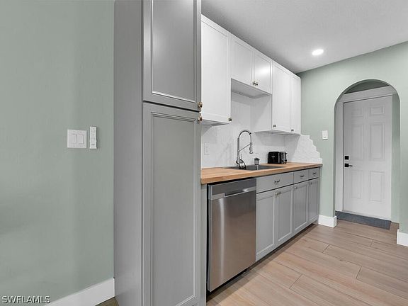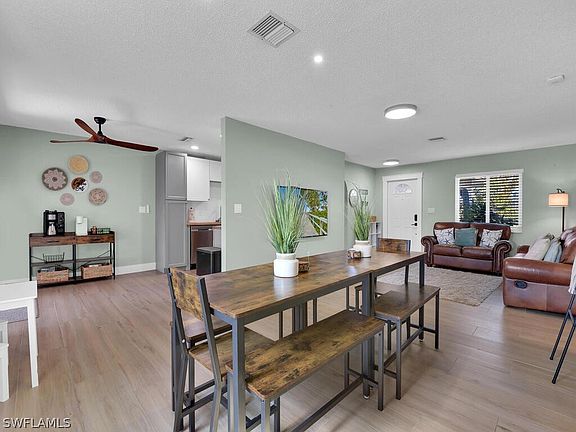 Beautiful home located in the sought after San Carlos Park. This 3bed 2bath home has many upgrades including but not limited to, wood look ceramic tile flooring throughout and calming interior paint colors. The Kitchen boasts of white upper cabinets, light grey lower and butcher block counter tops, giving the home the clean country feel. Kitchen also has Stainless Steel Appliances and water filtration system. Large master with remodeled modern bath and walk in closet. Two more beds on other side of home with updated guest bath. Large lanai gives you wanted outdoor space for relaxing or enjoying company. The fenced back yard includes plenty of room for a pool and or fire pit. 2 car garage with epoxy floor and laundry area. Roof 2017, HVAC 2021. Close to 75, Restaurants, Airport, Schools and Stadiums; this home is a must see.