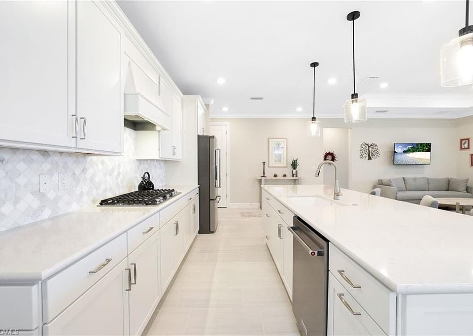 Extended screened lanaiSilgranit sinkQuartz countertopsBreathtaking sunset viewsGourmet kitchenExpanded cabinetryCeiling trays