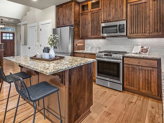 Step into this well-kept home where modern touches and thoughtful layout blend seamlessly. The main level welcomes you with a dedicated office space at the front entry - a light-filled area ideal for work or study. Flowing from that is an open concept living and dining area highlighted by tall ceilings, custom built-ins, and a cozy gas fireplace. The kitchen stands out with granite countertops, stainless-steel appliances, a large island, pantry, and plenty of storage. Downstairs convenience continues with a half bath, coat closet, and under-stair storage to help maximize usable space. Out back, enjoy a fully fenced backyard complete with a pergola, and the attached two-car garage offers built-ins and a man-door to the backyard.