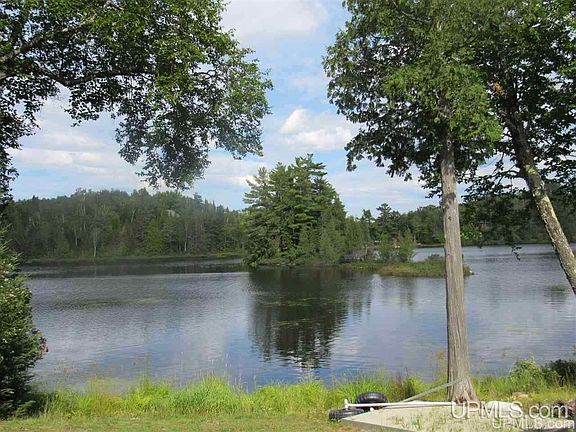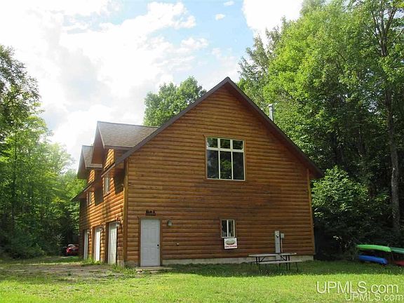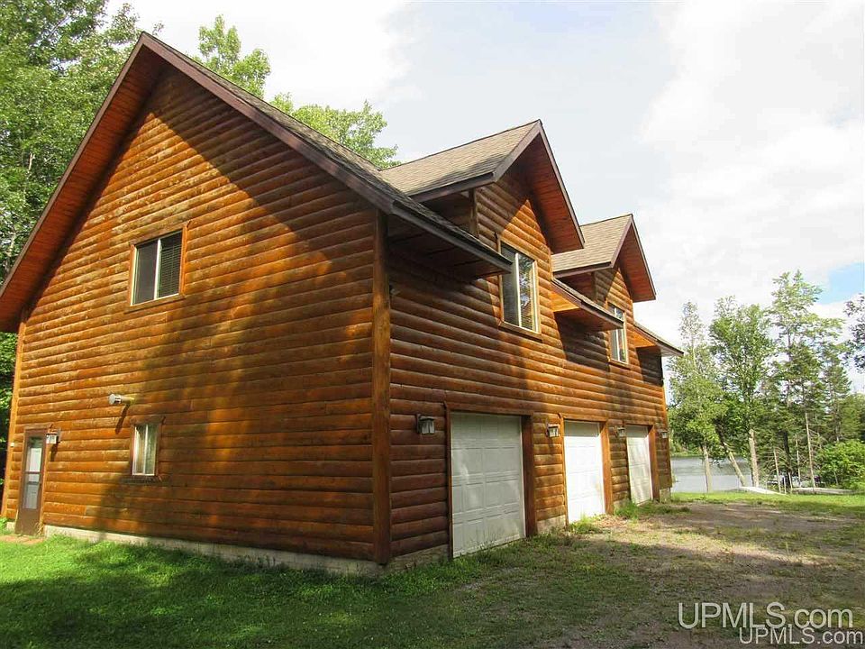 This 4 Bedroom Home rests on a terrific recreational parcel with frontage on the western shore of Lake Michigamme's Duck Bay! There is a nice slope to a shoreline area were you can launch your boats and swim. Just across the water is a view of Dutchman Point, a small Un-named Island, and Wanaluna Island. Lake Michigamme is one of the largest lakes in the Upper Peninsula of Michigan, covering 4,360 acres, and contains 27 islands. It is known for fishing of Muskie's, Northern Pike, Perch, Smallmouth bass, rock bass, Walleyes and Whitefish. The all-sports lake also offers opportunities for boating, canoeing, sailing, jet-skiing, and water-skiing. Massive mineral outcroppings around the lake attract hikers and rock hounds. Hunting and snowmobiling (Snowmobile Trail No 8) are minutes away. The property offered for sale is just minutes from the Historic Village of Michigamme, where tourists can shop for everything from antiques to fine art, to local crafts. The first floor of the home was designed to make outdoor life convenient. There are three large garage doors along the driveway to make it easy to load and unload your camp gear, and to park your ATVs, Boats, and Vehicles in the spacious Garage. There are large areas, and lots of cabinetry to store items. The remaining area of the first floor includes a Formal Foyer on this level that can be reached from a Man-Door at one end of the building, or from the interior of the garage. From there a Hallway takes you to a Laundry Area, Furnace Area, Three-Quarter Bath that has a glass enclosed corner shower, and a private Bunk-House style bedroom for Family or Guests. Upstairs on one end of the main living area is a large lakeside Gathering Room with a large window to view the woodlands, lake, and islands in the bay. A vaulted cedar wood ceiling, ceiling fan chandelier, hickory flooring and a corner free-standing wood stove set on a slate platform complete this area. An alcove of this room, along the stairway, provides an area for studying, or catching up on office type chores. A beautiful raised quartz countertop provides seating for dining at the other end of the Gathering Room. Continuing, you enter the beautiful custom kitchen. A nature themed ceramic tile backdrop along the counter, hickory upper and lower cabinetry, beautiful lighting fixtures, ceramic flooring, and quality appliances are all there! There are three bedrooms for family and guests. The Main Bedroom has the same vaulted cedar ceiling feature found in the Gathering-Dining-Kitchen areas, carpeted floors and a large walk-in closet. Two additional Bedrooms, are carpeted and have views of the woodlands. The Bathroom on this level also features a glass enclosed corner shower, and lots of under eave storage cabinets. If you are seeking a waterfront get-a-way schedule your appointment today!
