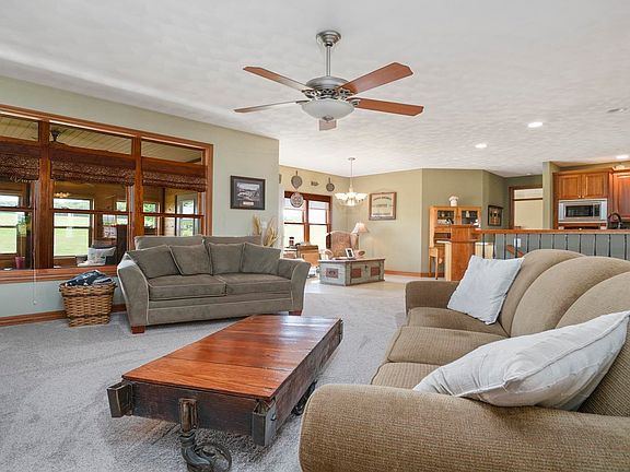 5 ACRE PROPERTY WITH CUSTOM BUILT HOME AND LARGE OUTBUILDING! This is the home in the country that you have been waiting for with 4+ bedrooms, 3 bathrooms and nearly 4,000 square feet of living space. Custom built with attention to detail, you will feel right at home the minute you walk into the this inviting home with split floor plan. Kitchen is open to living and dining room and features an eat up bar, eat in area, island, large pantry cabinet and pot filler. Living room boasts gas fireplace and vaulted ceilings along with access to the 3 season room with expansive country views. Updated master bath with stunning clawfoot tubs and walk in, tile shower. There are 3additional bedrooms on the main floor along with a dedicated laundry room. Walk out, lower level that is fully finished with spacious family room, full bathroom with walk in tile shower, kitchenette and bonus room that could serve as an additional bedroom. Walk out area has a concrete patio and charming pergola. A true rural property, this parcel includes a large outbuilding, fencing and shed for livestock and a chicken coop. 72x42 outbuilding is ready to be finished with a concrete floor, 2 - 12 ft overhead doors and a rough in for a bathroom. Wood burner included to help keep those propane bills low during the cold months. Properties like this do not come for sale every day, call for your showing!