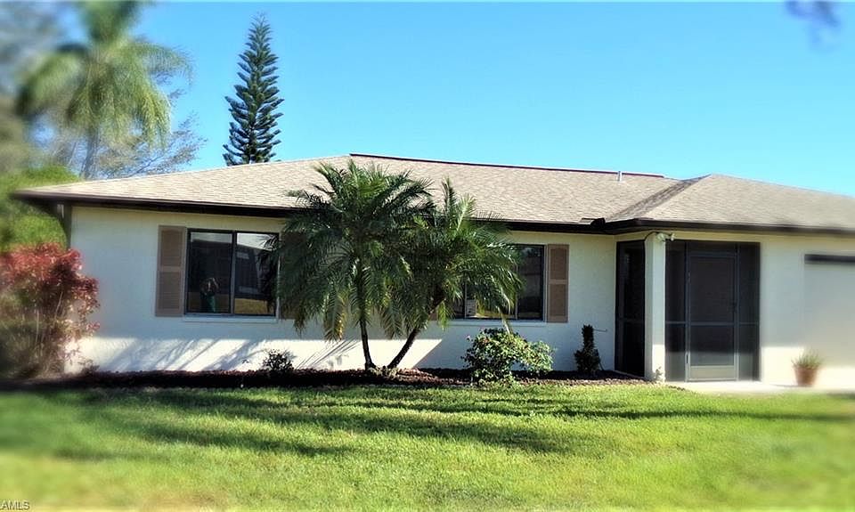 Lovely 3 bed/ 2 bath CUSTOM home built by original owners, with over 1500 sq feet of living space and 2 car attached garage in most desirable SAN CARLOS PARK, with a view of the San Carlos Golf Course! The exterior was newly painted, extended yard with pavers adds extra outdoor area! Well maintained interior with Maple laminate flooring, tiled kitchen with stone tile back splash, over-sized large pantry, updated bathrooms, and 2 living spaces, both family & Living room! Beautiful stone fireplace in family room with vaulted ceiling. Lots of storage, and walk in closet in Master BR ! Additionally there is a generator outlet and an Insulated Garage Door with an electric screen to bring in the fresh air! Also, outdoor motion detector lights at all 4 corners, and gutters. Attached storage shed with a roll up door for your lawn mower and all your tools. Screened tiled back Lanai porch, central water & Septic! Timed Irrigation for the lawn from the Creek. Close to FGCU campus and SWFL Int Airport. Close to shopping and dining at Gulf Coast Town Center, Miromar Outlet & Coconut Point Mall. Great location in San Carlos Park and Golf community and this family home won't last long!