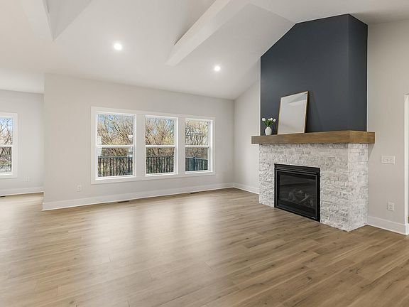 Large center islandCozy fireplaceSpa-inspired bathWalk-in pantryVaulted great roomLarge windowsWood beams