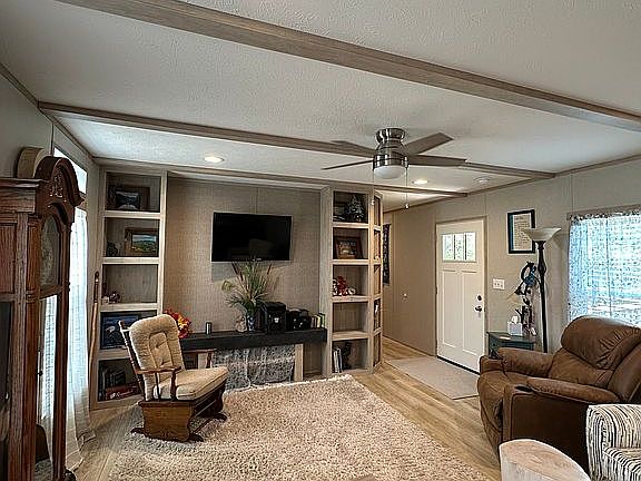 Discover affordable luxury in this beautifully designed 2023 Clayton single-wide manufactured home on foundation. This home offers 3 bedroom and 2 baths, and 1295 sq.ft. With a large 16x16 deck of the dining room. The spacious living area flows seamlessly into a stylish kitchen equipped with upgraded Whirlpool stainless steel appliances including a 5 burner gas range stove, dishwasher and refrigerator. Spacious Master Suite with walk-in closet and en-suite bath with double vanity, walk-in shower and separate soaking tub.