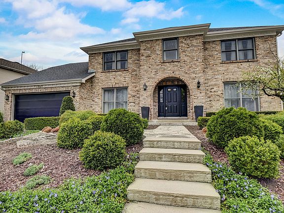 Welcome home to this meticulously kept gem located in the desirable Campus Green neighborhood, with Ranchview Park just across the street. From the moment you arrive, you'll be captivated by the amazing curb appeal of this property. Step inside to discover spacious dining and living rooms featuring fresh carpet, offering a welcoming atmosphere for gatherings. Freshly finished Herringbone hardwood flooring in the main hallway and office adds unique character and charm to the home. The eat-in kitchen is a chef's delight, boasting plenty of cabinet and countertop space, stainless steel appliances, a new kitchen faucet, a large kitchen island with a breakfast bar comfortably seating two, and a pantry for added storage. The family room is perfect for game nights and relaxation, featuring a vaulted ceiling and a wood-burning fireplace with a custom mantle. The laundry room on the main level has been updated with a new utility sink, enhancing convenience. Upstairs, discover four spacious bedrooms, including a primary suite with a custom walk-in closet complete with closet organizers and an en-suite bathroom featuring a deep soaking tub and a custom tiled stand-up shower. The fully finished basement adds over 1200 square feet of additional living space and has been updated with Luxury Vinyl Tile flooring. The wide-open space is perfect for recreation and movie nights, and don't miss the built-in butler bar with a fridge for added entertainment convenience. A bonus room, currently used as a bedroom, is ideal for private at-home offices or additional living space. Outside, the wonderfully landscaped backyard provides the perfect spot to unwind around the pond on a summer night, offering a serene and tranquil setting. Don't miss the opportunity to make this exceptional property your new home!