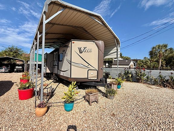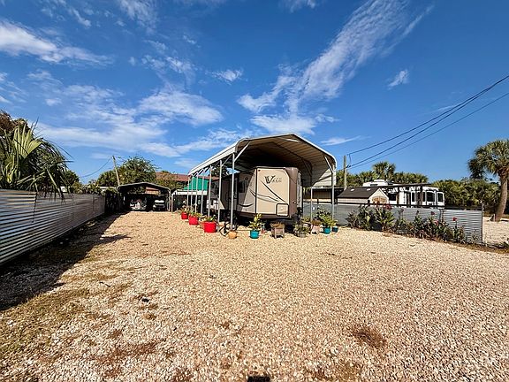 Welcome to 1757 Grouper Avenue in Port St. Joe – an improved RV lot designed for both comfort and convenience just steps from the bay! This property features a spacious carport large enough to accommodate a 5th wheel, along with a second oversized carport ideal for vehicles, golf carts, or extra storage. An inviting outdoor living area extends your space for relaxing and entertaining. The lot is being offered with or without the camper, giving buyers the option to create their perfect coastal retreat. The current camper includes three slide-outs for added room and functionality. Located only about 300 yards from the pristine shores of St. Joe Bay, you'll enjoy quick access to kayaking, fishing, crabbing, or simply relaxing on the beach. Just minutes away, downtown Port St. Joe offers a variety of restaurants, shops, and local charm. For boaters, the property is ideally positioned near the Intracoastal Waterway, two public boat launches, two marinas, and multiple boat storage facilities. Whether you're seeking a weekend escape or a full-time coastal lifestyle, this property delivers the perfect blend of location, flexibility, and value.