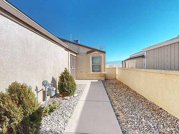 Charming two bedroom, two bathroom home in Rio Rancho. This home features newer windows installed in 2019 and the refrigerated air/heat-cool combo system installed in 2023 with a condensation pump ensures year-round comfort. The roof, also updated in 2019, adds peace of mind for years to come. Step outside to enjoy the private backyard oasis, complete with two handy storage sheds and a covered patio. Schedule your showing today!