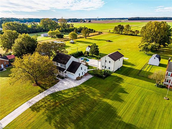 Escape to the serene countryside with this farmhouse-style home nestled in the heart of Pungo. Surrounded by agricultural views, this home offers a blend of rustic charm & modern convenience. Enjoy 3 bedrooms & 3.5 baths, great for family living or entertaining. The 864 sqft garage with 3 bays (one boasting 13' ceilings) for vehicles, boats, or campers. A versatile 527 sqft suite with a full bath & walk-in storage provides endless possibilities. The garage opens to a beautiful pool area, for gatherings. Two additional outbuildings (16x20' and 10x12') can easily be transformed for your agricultural dreams—think chicken coops or 4H projects. With ample backyard space for horses, this property is a dream for animal lovers. Relax in the sunroom & embrace the tranquility of rural living. This farmhouse is not just a home; it’s a lifestyle. Centrally located near a boat ramp to Back Bay, tennis courts, Creeds Elm, & a public library. Shopping & dining is just 12 minutes away.