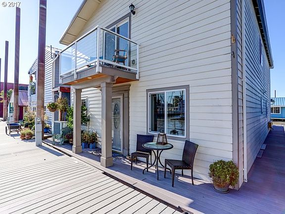 Complete remodel & new float in 2007 w/SLIP OWNERSHIP! This home is stunning at every turn. Soaring ceilings, cozy gas fireplace, luxury kitchen! Smart sunroom offers year round river enjoyment. This floating home lives like a traditional house. The floor plan is perfection w/ large rooms, walk in laundry room, & plenty of storage throughout. Metal roof and Hardieplank siding ensure easy care. Click video tour for more photos and video.
