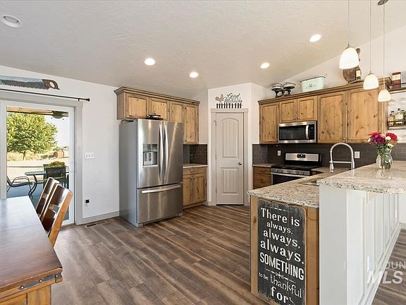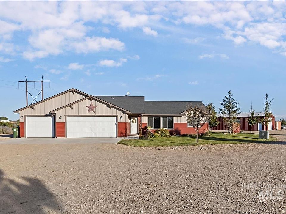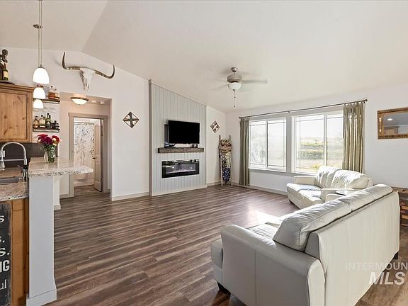 Idaho Equestrian & Homesteader’s Paradise. Nestled in the heart of Idaho, this meticulously maintained, single-owner home showcases true pride of ownership and thoughtful design throughout.3 spacious bedrooms plus a dedicated office, perfect for remote work or creative pursuits. Luxurious primary suite with his and hers walk-in closets. Oversized 3-car garage with ample storage as well as a generator switch wired in and a dedicated RV plug. Designed for low-maintenance living with high-reward comfort. Step outside to a large covered back patio offering breathtaking views of the valley—ideal for entertaining guests or unwinding after a long day. 30x50 fully insulated shop with 12ft drive-through doors. 220V power, RV plug-in, and separate breaker box set on a concrete slab foundation. 6 acres of irrigation provided by low maintenance gated pipe. Auto water in every pen and pasture. Large riding area as well as 5 pens with shelters. This property offers the perfect blend of rural tranquility-modern convenience.
