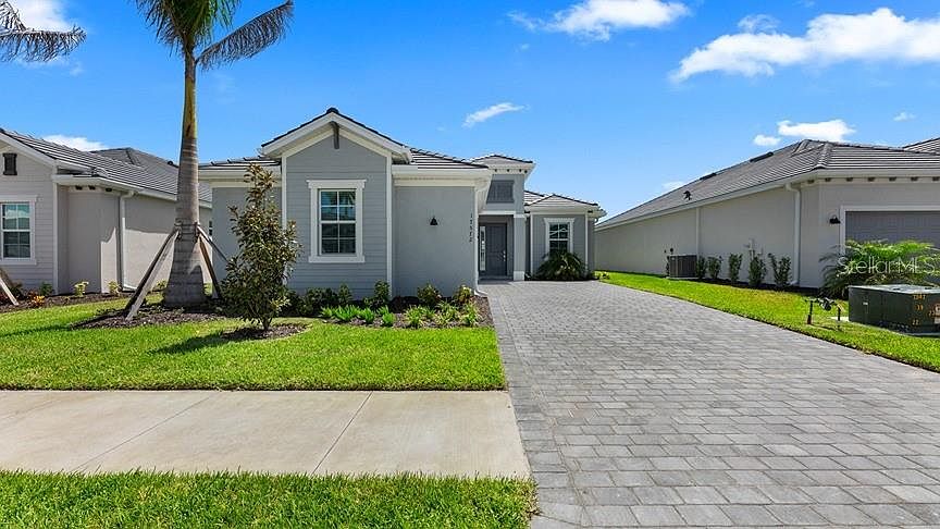 Discover the best of resort-style living complete with a bundled golf membership at Wellen Park Golf & Country Club near Downtown Wellen, FL. Located within the Wellen Park masterplan, residents enjoy resort-style amenities and modern conveniences. Homeowners can enjoy a clubhouse, providing luxury living and entertainment right in your own backyard. Modern and sophisticated, this single-story home enjoys a shared design among the dining room, kitchen and Great Room that opens to the covered lanai. A flexible den is near the entry, opposite a full bathroom and bedroom that’s perfect for guests. The private owner’s suite enjoys a personal bathroom toward the back of the home. Prices and features may vary and are subject to change. Photos are for illustrative purposes only.