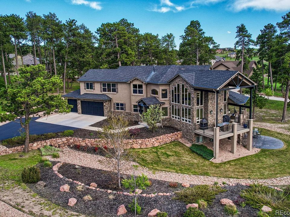 This is Colorado living at its finest. Located in the desirable Walden Preserve neighborhood and award winning Lewis-Palmer Schools District 38. This exquisite 2-story residence offers 5 bedrooms, 4 bathrooms with a spacious 3-car garage with epoxy floors. Breathtaking mountain views on a professionally landscaped lot. On the main level you will find a gourmet kitchen with stainless steel appliances, large beautiful granite island with seating, a large covered deck off the kitchen and a living room that makes it a perfect place for outdoor meals and watching the sunset to the west. Beautiful wood floors throughout main level, an impressive stone fireplace that soars to the ceiling, spacious formal dining room, walk in pantry, main floor laundry & large office w/french doors. Upstairs you will find the primary bedroom, plantation shutters, a large walk-in custom closet and a 5-piece master bathroom with fireplace, w/amazing bathtub, walk-in shower and plenty of cabinet storage. Upstairs you will find 3 bedrooms and a full bathroom. Downstairs is where the fun begins... amazing walk-out basement w/plenty of windows & walk-out access to the covered stamped concrete patio with a hot tub. Inside you will find the home theater w/reclining seating, wet bar and surround sound speakers that are included. Large game/work-out area, 3/4 bath & bedroom with customs walk-in closest. Additional items: Chandeliers, Air Conditioning, Pre Wired for an additional A/C unit, Gutter Helmet, Whole house purifier, Tesla Solar Panels & Battery Pack, Hot Tub, UV Window Protection on all the Windows in the living room, Custom blinds throughout the home, Custom Closet Systems in 2 rooms, 5 theatre seats, and a humidifier. Miles of walking trails and outdoor recreation, while minutes away from town. Easy access to I-25, COS, AFA and Denver. Don't miss your opportunity to own a move-in ready home with standout features and unbeatable views. Schedule your showing today!