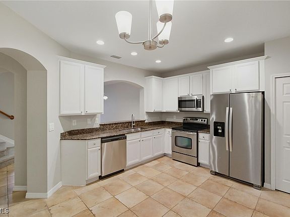 This spacious 4-bedroom, 3-bathroom townhome in Timberwalk at Three Oaks offers 1,938 square feet of comfortable living space and one of the community’s largest floorplans, complete with a valuable 2-car garage. Located in San Carlos Park near Fort Myers, Florida, this move-in ready home combines convenience, comfort, and value in one of Southwest Florida’s most desirable gated communities. The freshly painted interior features a welcoming foyer entry, a tiled main level, and a thoughtfully designed layout. The eat-in kitchen includes white cabinetry, stainless steel appliances, granite countertops, and a pantry, while a formal dining area opens to a spacious living room and private screened patio—perfect for relaxing or entertaining. A powder bath for guests and a dedicated laundry room add convenience on the first floor. Upstairs, you’ll find four bedrooms, including a generous primary suite with vaulted ceilings, dual closets (one walk-in), and an ensuite bathroom featuring dual sinks, a makeup vanity, separate shower, and soaking tub. Three additional bedrooms share a full hallway bath with tiled floors, a large vanity, and a tub/shower combination with glass sliding doors. The upstairs level is finished with plush neutral carpet throughout, creating a warm and cohesive feel. Major updates include a 2020 HVAC system and 2023 hot water heater for added peace of mind.